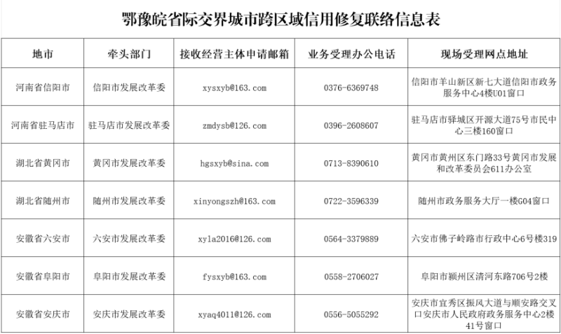 现将七市信用修复办理相关信息公示如下,方便广大经营主体咨询办理: